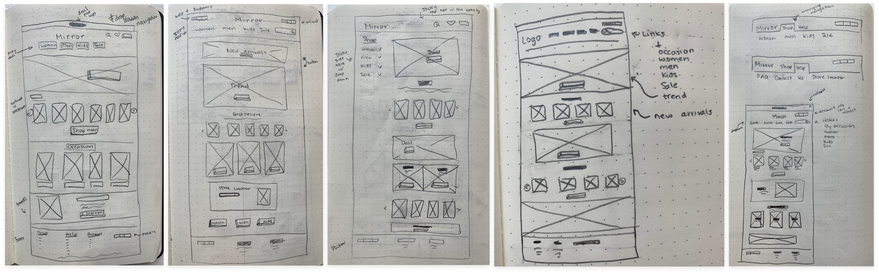 Sketches: Next, I started sketching out layout ideas for the homepage.